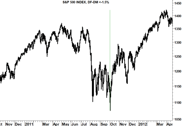 Signori, ecco a voi il pattern Down Friday, Down Monday (DF-DD). Qualificato da una perdita particolarmente considerevole: superiore, in ambo le sedute, al punto e mezzo percentuale. Roba che non si manifesta così frequentemente…