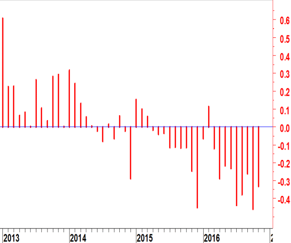 Al netto delle sottoscrizioni, i fondi comuni azionari americani hanno eseguito richieste di riscatto in ben 19 degli ultimi 20 mesi. Wall Street ha conseguito una performance a doppia cifra nel 2016, ma gli investitori sono passati alla cassa, anziché investire denaro sul mercato azionario. Un comportamento schizofrenico, si direbbe.