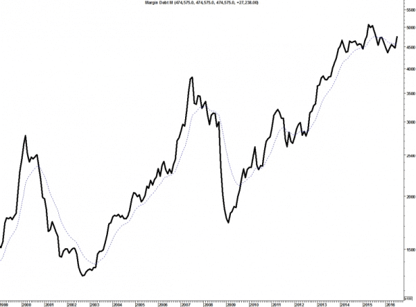 La realtà, non di rado, è contraria. Una delle misure più efficaci del sentiment degli investitori è il Margin Debt (MD): vale a dire, il totale dell’indebitamento contratto dal pubblico retail con il proprio broker, per l’acquisto di azioni “a leva” sul mercato. Il dato, reso noto in questi giorni dal NYSE, ha fatto registrare un vistoso rimbalzo. E’ una cattiva notizia?